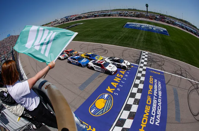 Stage 1 was very uneventful, Denny Hamlin led enough laps to win the first stage, and the only things that happened were Ryan Blaney hitting the 16 car on the way out of his stall, and Kyle Busch with a shredded tire. And nothing, I mean nothing, happened in stage 2. I mean, sure Kyle Larson passed Kevin Harvick for the most laps led at Kansas (noice) but that's about it. Larson went on to win stage 2. Don't worry, things are going to get crazy.